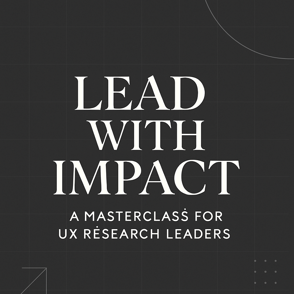 Iβve shared this perspective in masterclasses across the spectrum, from foundational sessions for individual contributors to executive-level training for aspiring board leaders. Now, Iβm bringing this experience into Becoming a UX Research Leader, a live masterclass designed to support experienced researchers stepping into leadership with clarity and purpose.